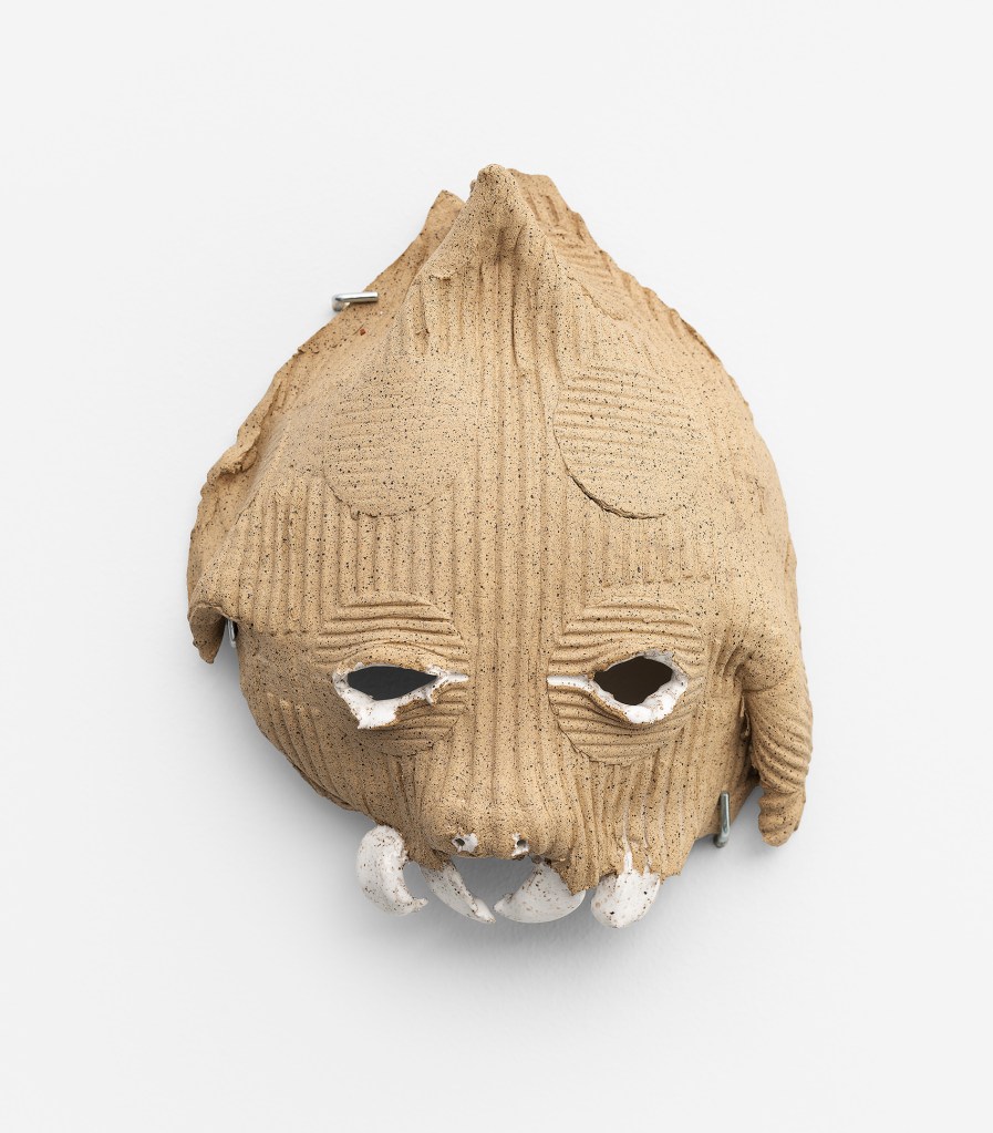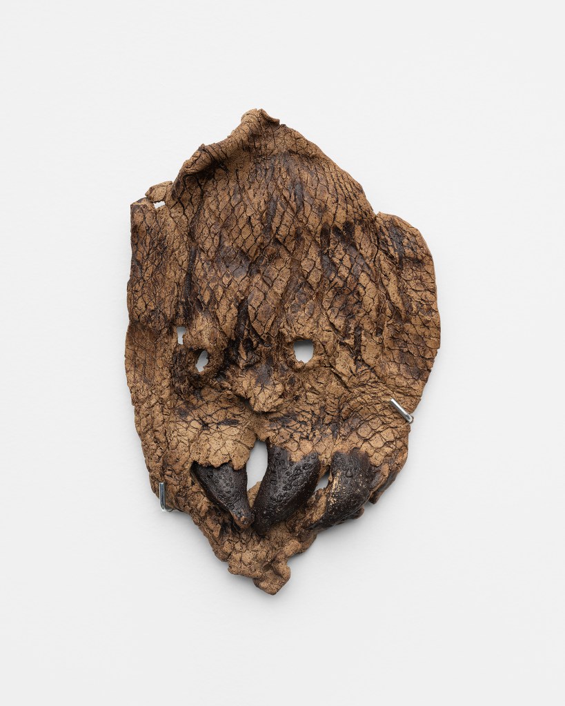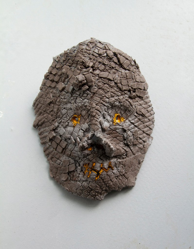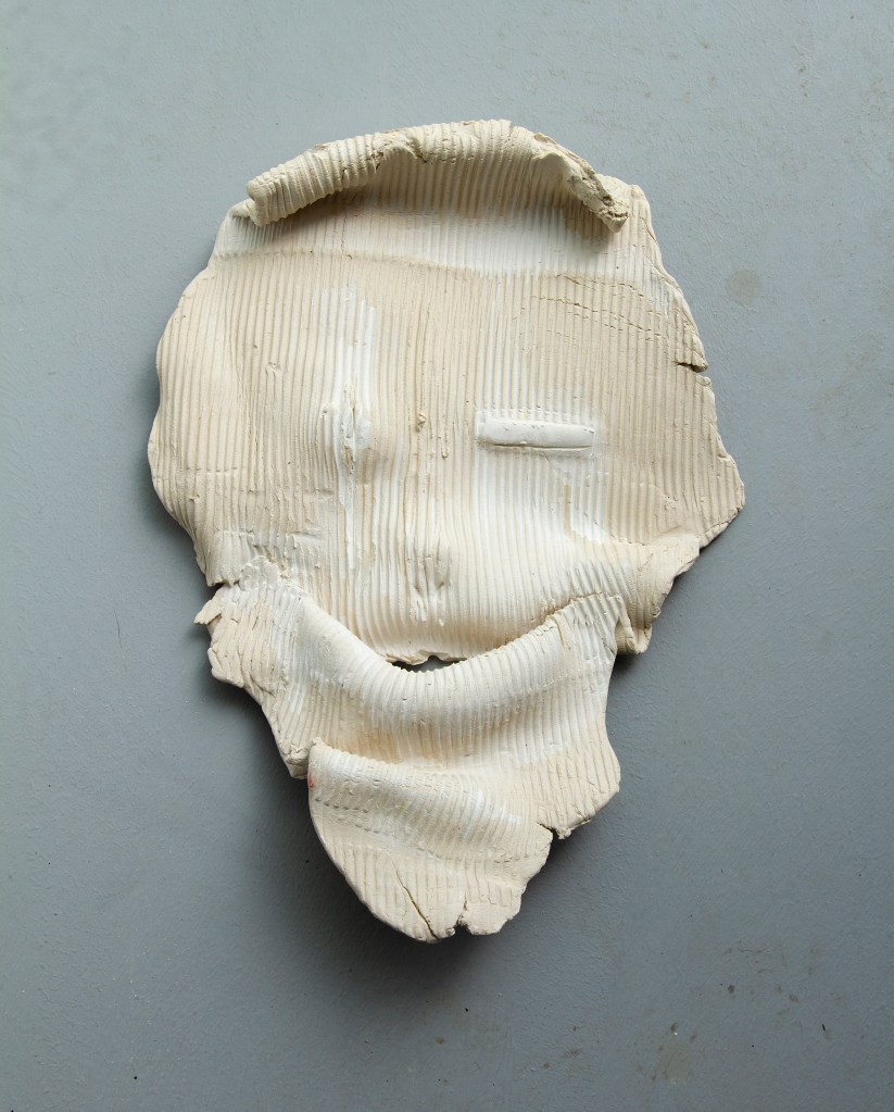 are clay reliefs, (in its majority masks), where hunger is set in relief, instead of being relieved. Besides its apotropaic function (to conjure hunger) it also speaks of an aesthetics of hunger, as defined by Glauber Rocha, a mode of production based on poor means. In spite its archaic semblance, the reliefs are moulded after cardboard, fruit nets and food – the very contemporary materials that remains or are discarded in value circulation.