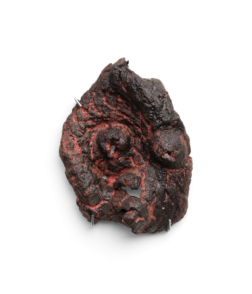 HR # 7 (charcoal skull) / fired and partially glazed clay and pigment / 2025