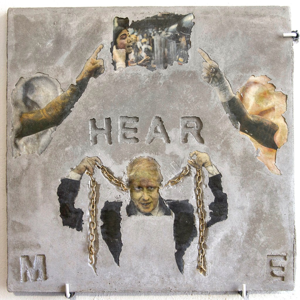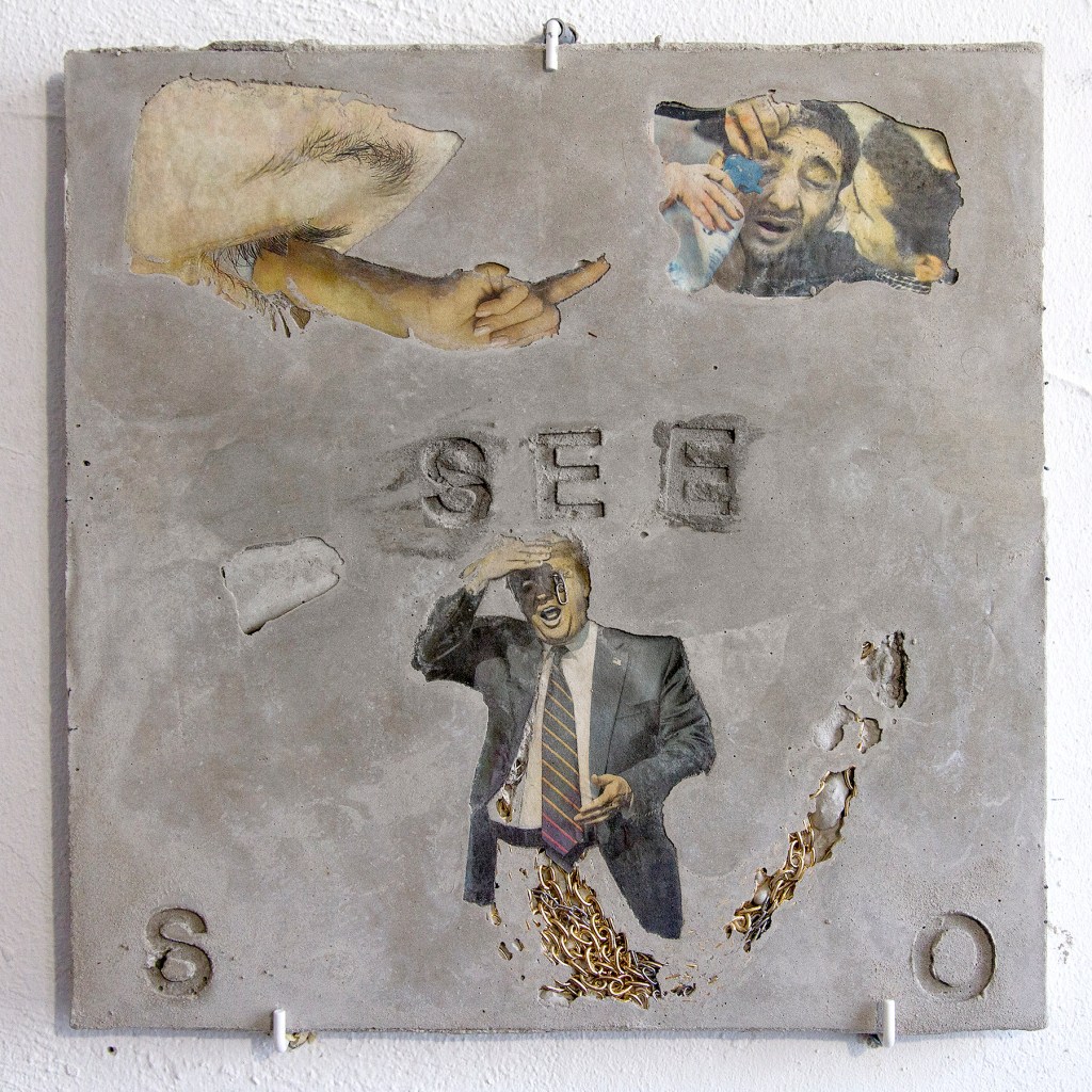 Triptych, concrete, paper, chains and chinese ink 32 x 32 x 1.5 cm each, 2020
